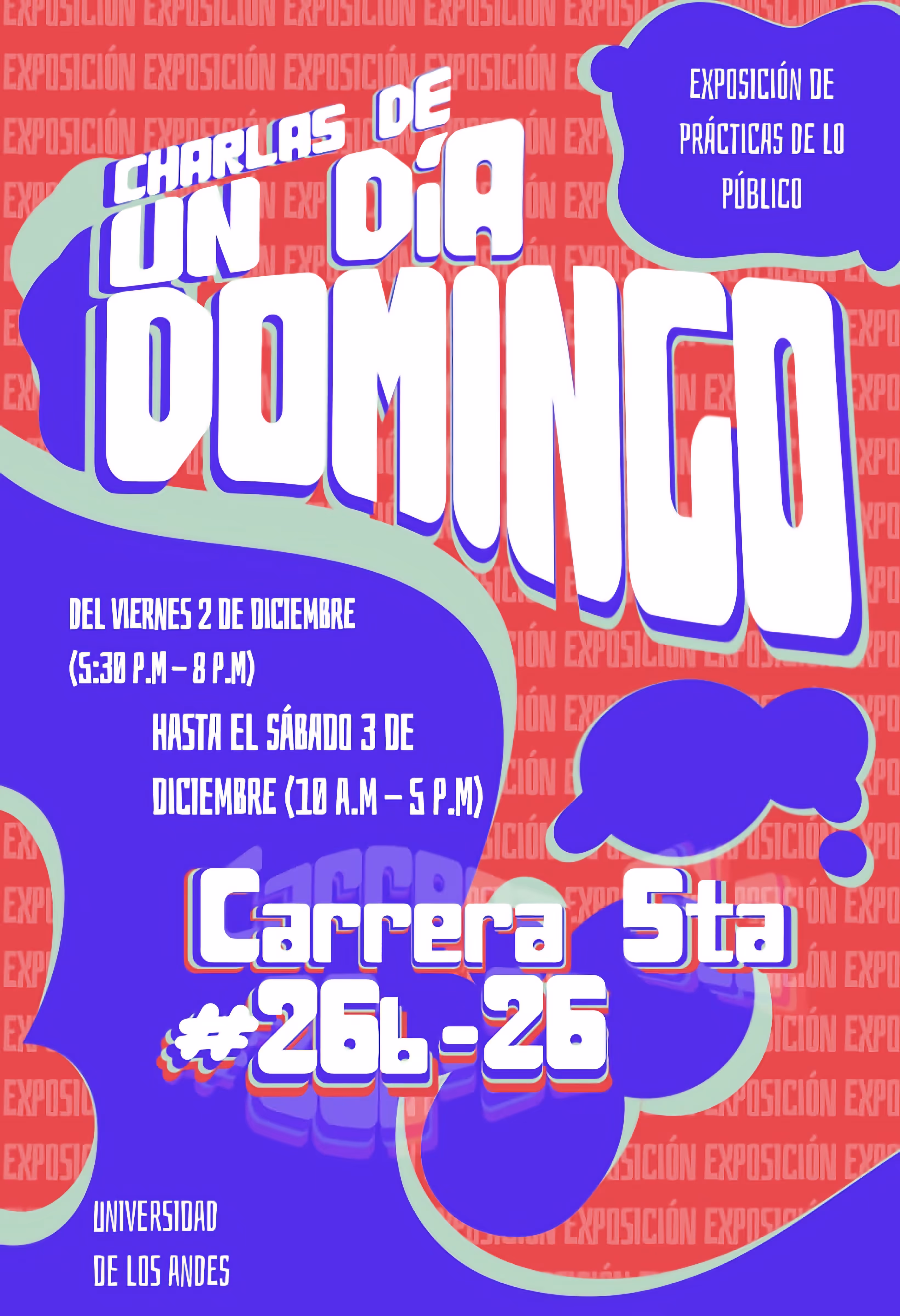 Entre la cotidianidad y la reflexión, esta muestra reúne obras que surgen de preocupaciones personales y colectivas, aquellas que, en un domingo cualquiera, se convierten en conversaciones entre amigos. Aquí, las ideas fluyen sin prisa, con la espontaneidad de quien comparte inquietudes y pensamientos en una tarde sin afán. Las piezas expuestas son fragmentos de esas charlas informales, donde lo íntimo se cruza con lo común, revelando preguntas, observaciones y relatos que construyen nuestra manera de habitar el mundo.