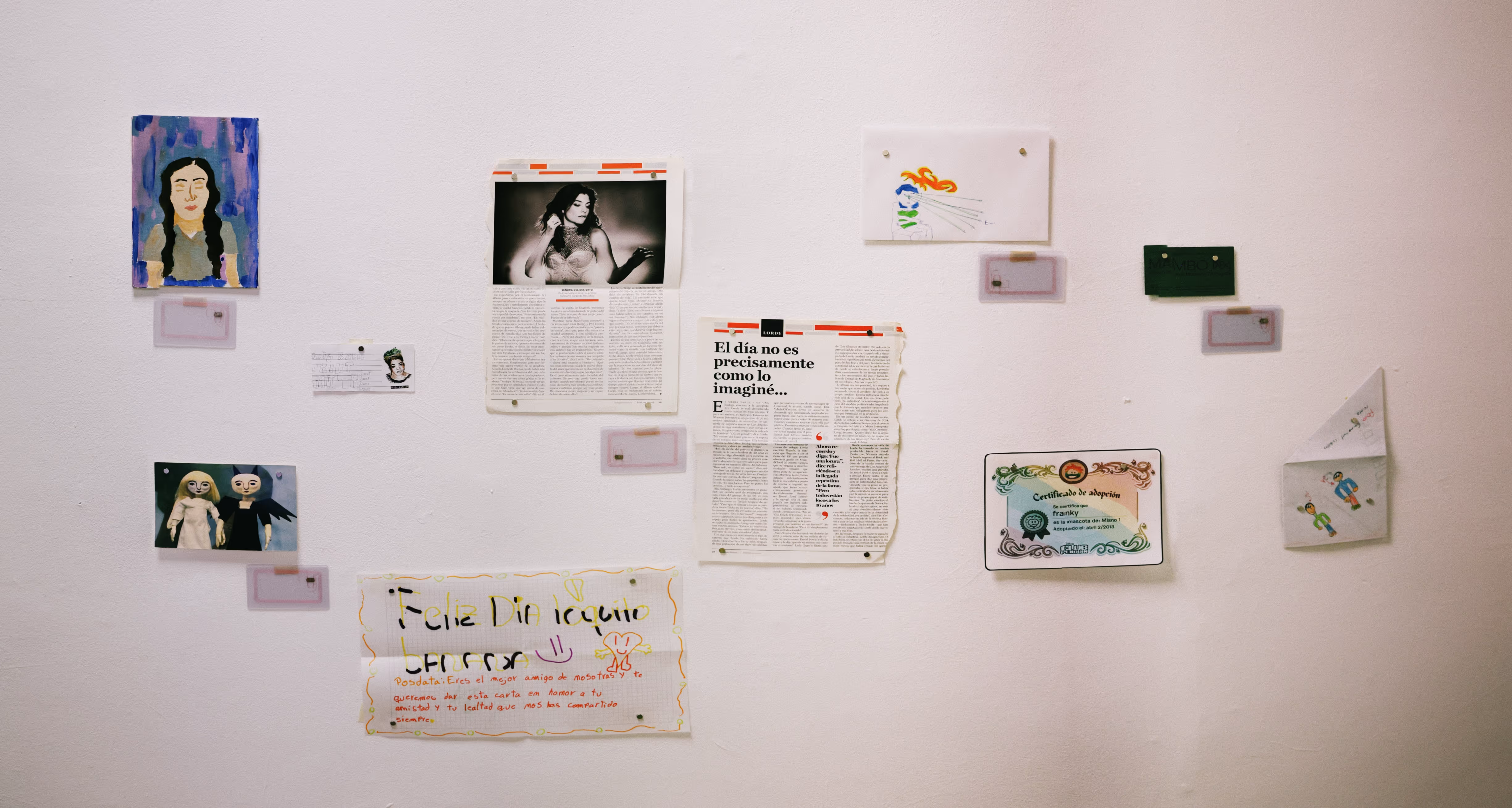 El primer nivel, objeto y espacio, es la puesta en escena de una habitación: fotografías, material de archivo propio y bodegones construidos a partir de objetos personales conforman una memoria material estática.