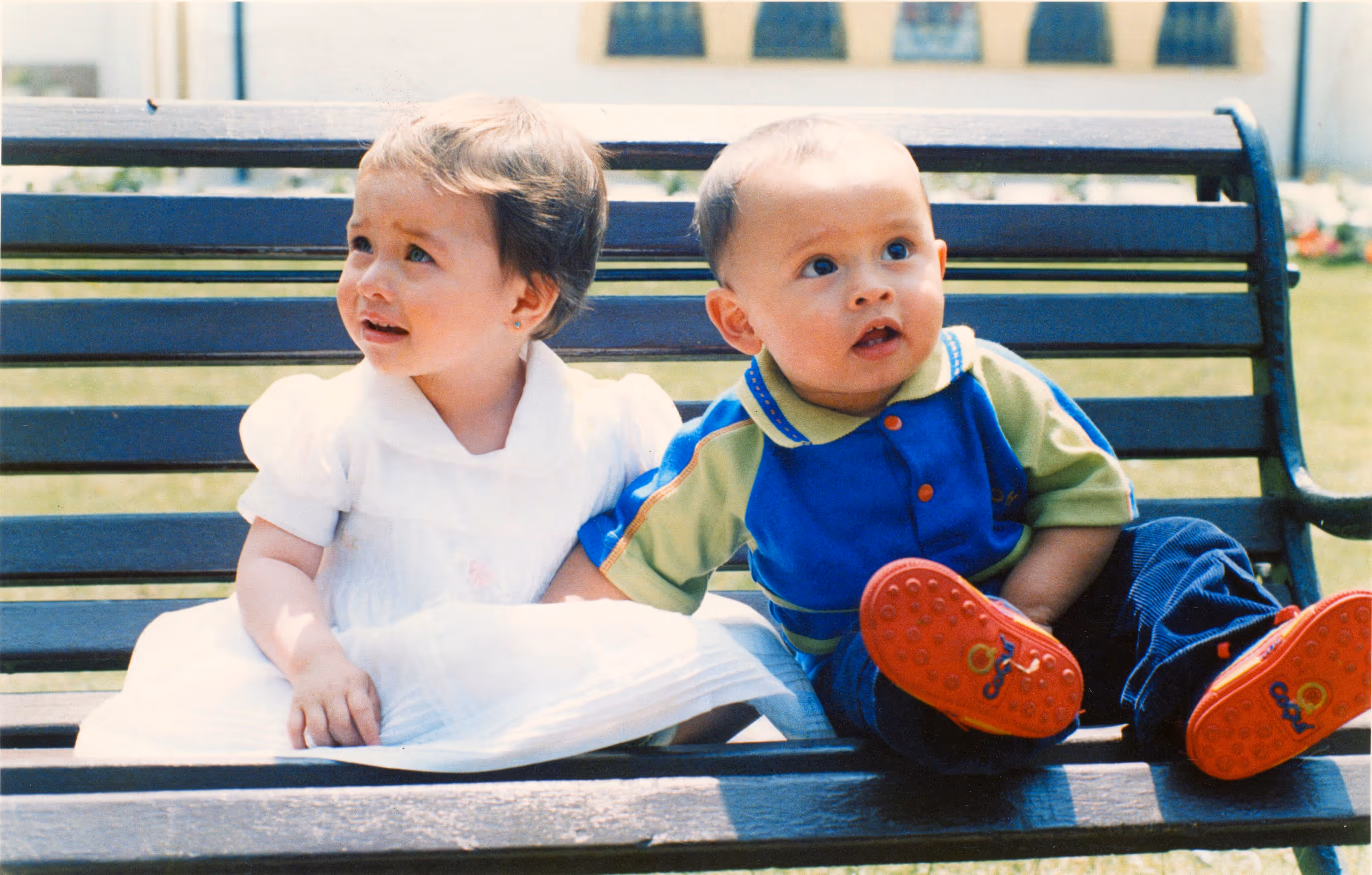 Fotos de documento de mi mamá; mi mamá y yo cuando tenía un año.